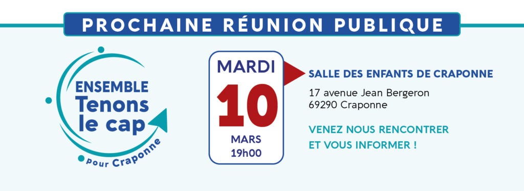 La liste Ensemble, Tenons le cap pour Craponne vous invite à une nouvelle rencontre citoyenne pour échanger sur l’avenir de notre ville et vous dévoiler ses autres projets de campagne autour de sujets structurants et d’avenir.